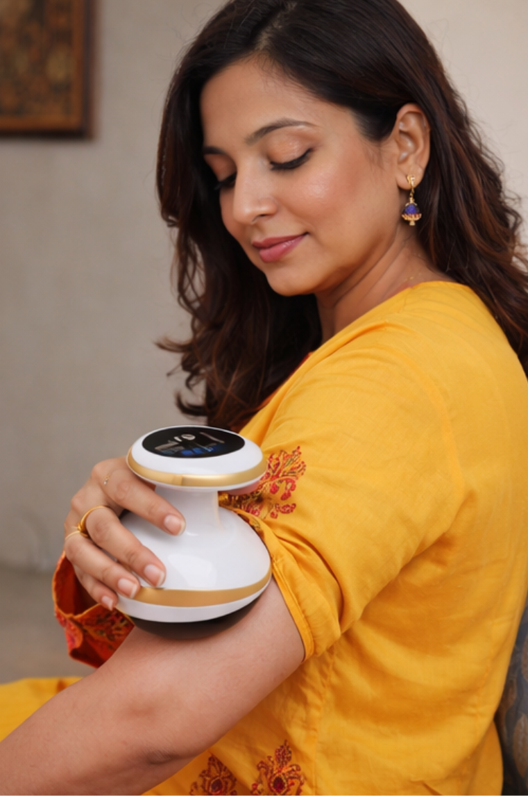 Supports lymphatic drainage & improves circulation. Gentle, rhythmic suction stimulates the lymphatic system and helps reduce fluid buildup beneath the skin. At the same time, circulation is activated, supporting a smoother and more even-looking skin texture.